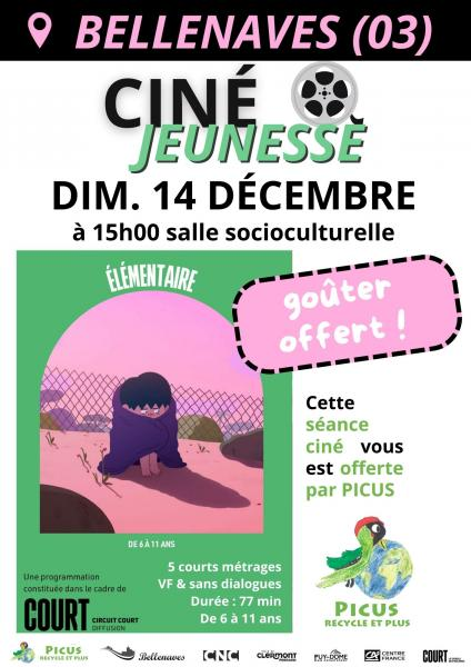 Tél : 0470583975 Le 14/12/2025 L'association Picus recycle et Plus, vous offre une soirée courts métrages jeunesse dimanche 14 décembre à 15h à la salle socioculturelle de Bellenaves. Entrée gratuite et goûter offerte aux enfants !